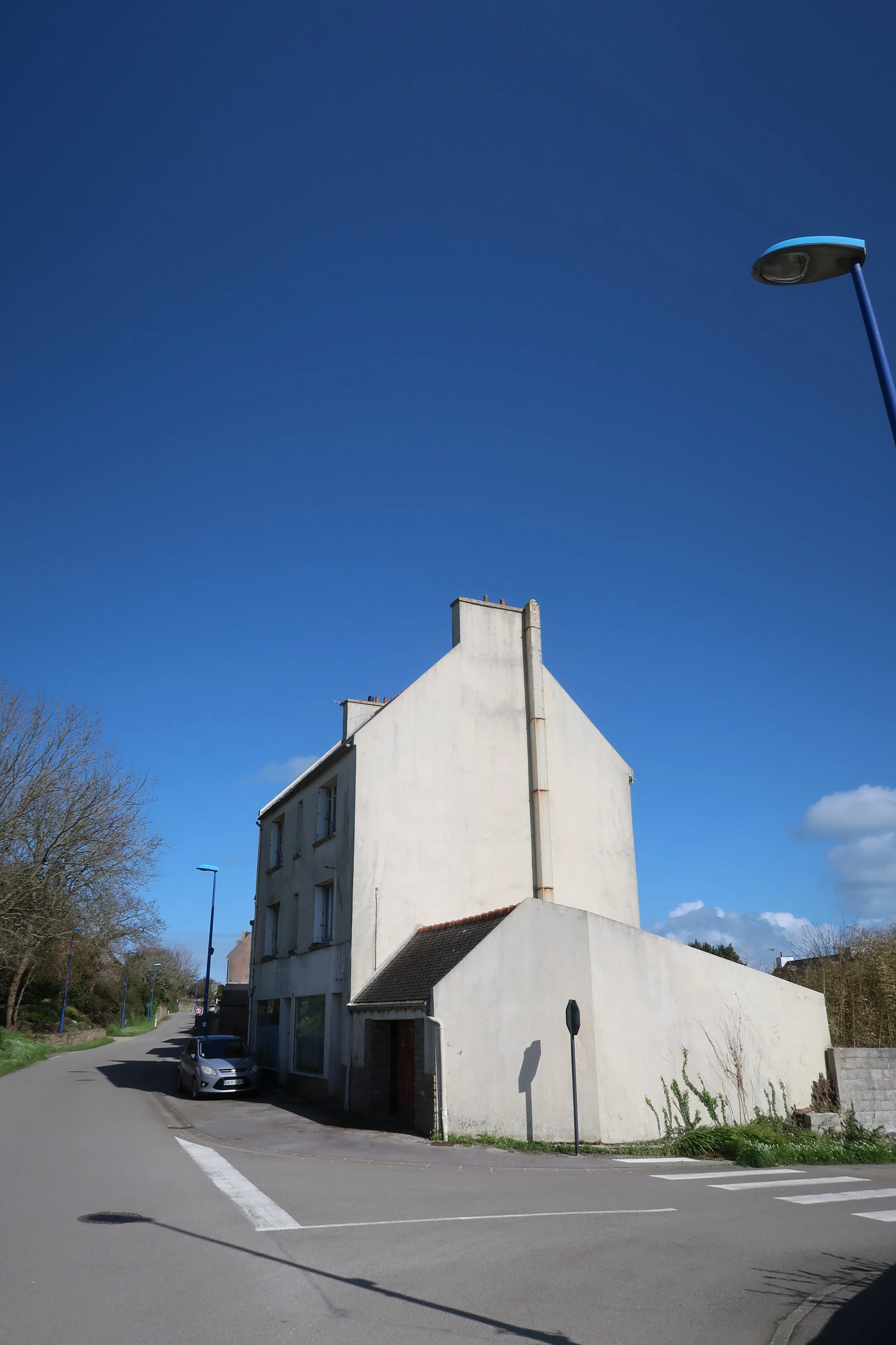 Ancienne pharmacie du bourg de Cléden-Cap-Sizun, le bâtiment a été repris par un couple d’artistes souhaitant la transformer en maison et atelier.